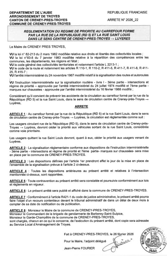 Arrêté réglementant la circulation au croisement de la rue Saint-Louis et de la rue de la République